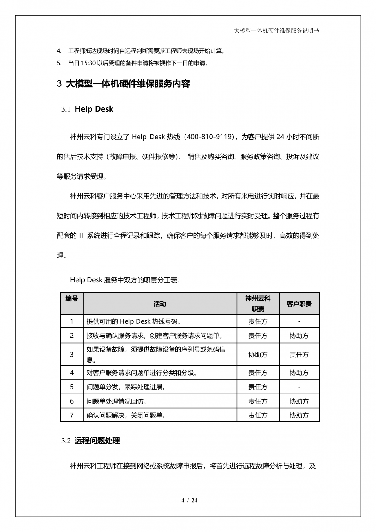 神州A924 DS大模型一体机硬件维保服务说明书_V1.1